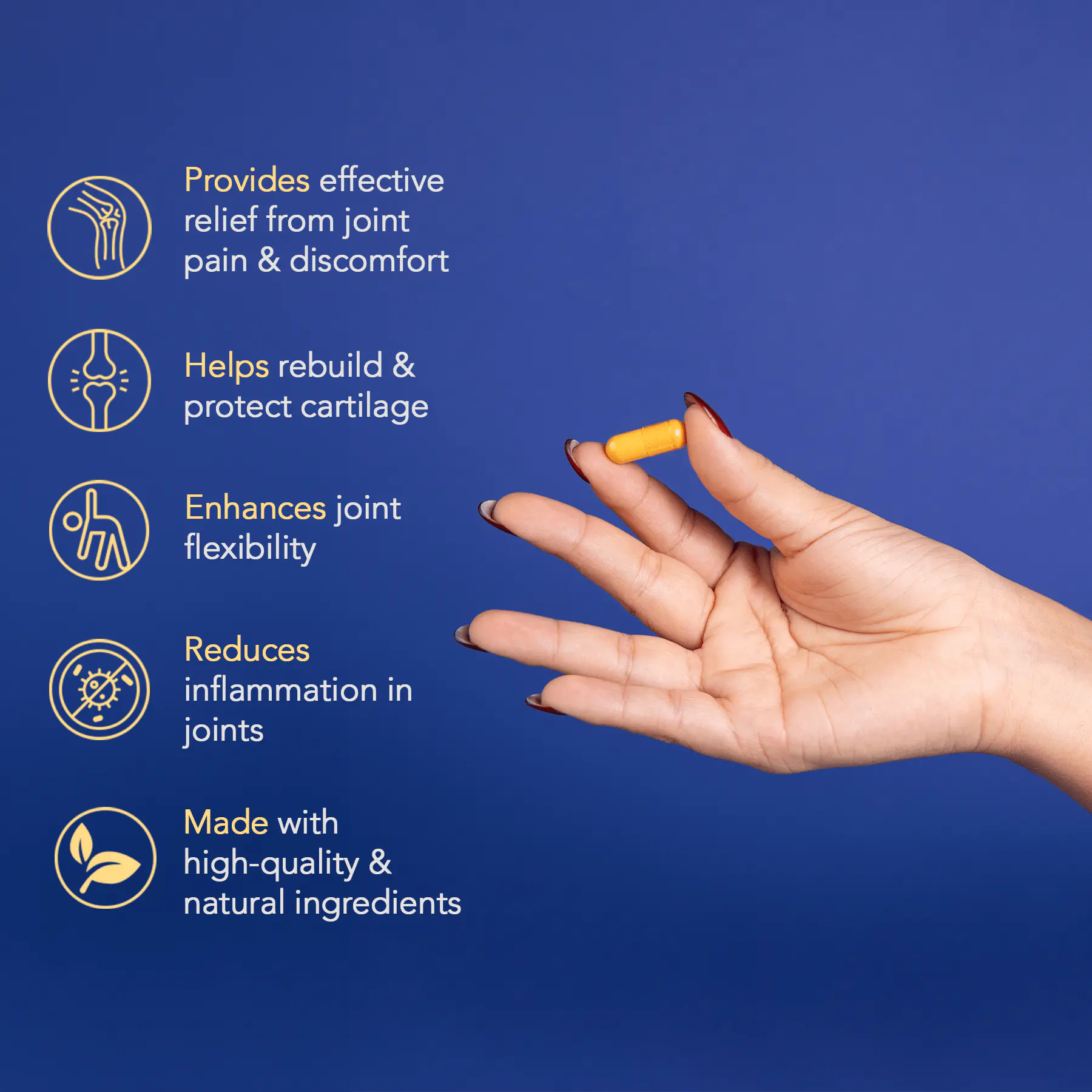 This advanced formula works by promoting cartilage repair, reducing inflammation, and enhancing joint lubrication, leading to long-term relief and increased mobility for those suffering from stiffness or pain.
