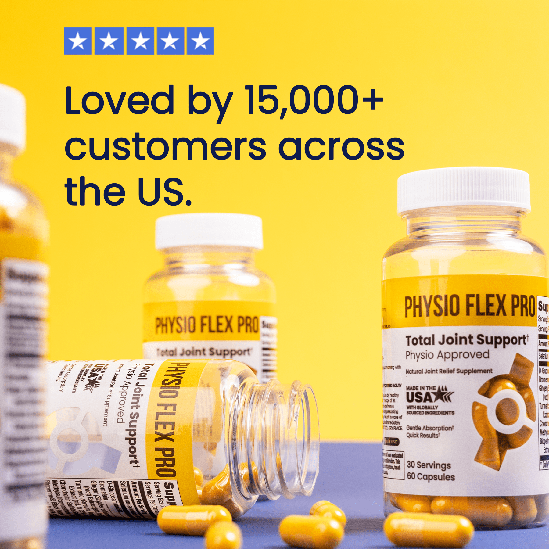 Physio Flex Pro uses industry leading doses of natural compounds that offer the best chance at repairing, rebuilding and strengthening joint tissue. We've worked with Olympic athletes and thousands of people globally to help maintain and bring back their movement, no matter the age or the activity level. (Yes, Physio Flex Pro does work!)