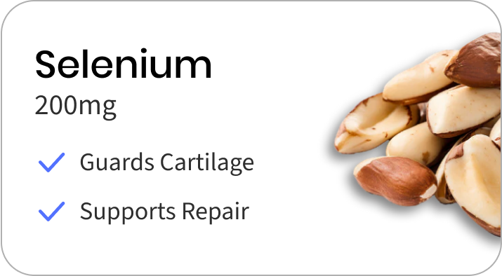 Selenium: Supports cartilage health and reduces pain.