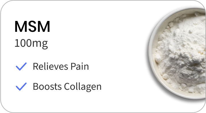 MSM: Relieves pain and improves joint flexibility.